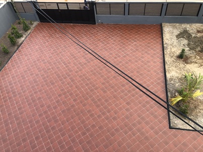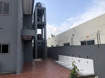 Cemented compound with flower beds and mini garden area - Mounted poly tank for each apartment