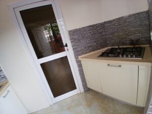 - Fitted kitchen cabinets with heat extractor and gas burners