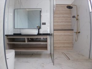 - Fitted bathroom accessories with heaters