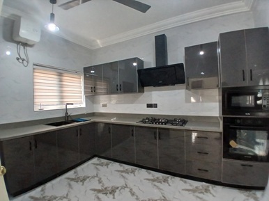 - Fitted kitchen cabinets with heat extractor, gas burner, microwave &fridge