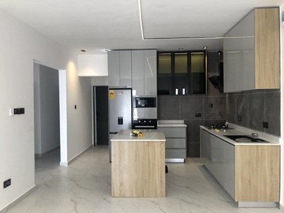 - Fitted kitchen cabinets with heat extractor, gas burner, microwave &fridge