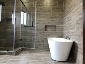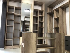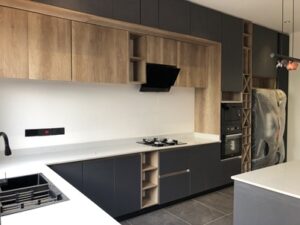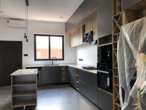 - Fitted kitchen cabinets with heat extractor, gas burner, microwave &fridge