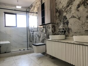 - Fitted kitchen cabinet with gas cooker, fridge, washing machine , microwave, fridge &heat extractor